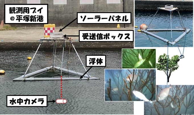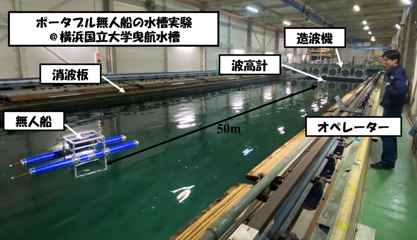 低コストで効率的に水中映像を取得するため、新しい浮体システムの開発を進めています。広範囲の観測には、ポータブル無人艇を開発しています。数値計算や水槽実験によって船型の最適化、水中翼による高速化、推進と自動操縦のマッチングに関する研究を行っています。一方、長期間の定点観測には、製作が容易で転覆しにくい観測ブイを開発しています。ブイには発電装置を搭載しており、得られた電力は水中カメラの動作や映像信号の送信に利用されます。これにより、スマートフォンなどからリアルタイムに水中映像を確認することが可能です。